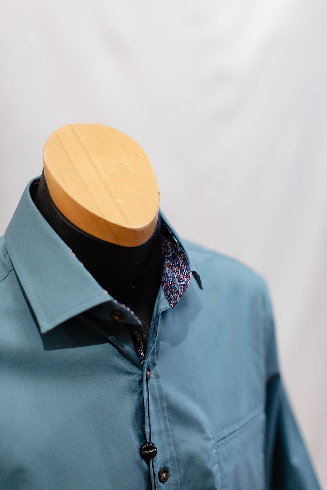 Well tailored and comfortable, Berlin shirts are 100% Cotton with a singular pocket, and contrasting collar and cuff.