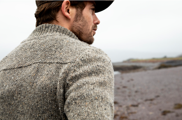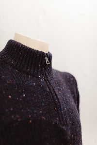 This half-zip is knit in Donegal using sustainable, mulesing-free Merino wool. Classic yet contemporary, it features ribbed stitching along the hem, neckline and cuffs. The fleck yarn captures the many colors of the magnificent Donegal countryside.