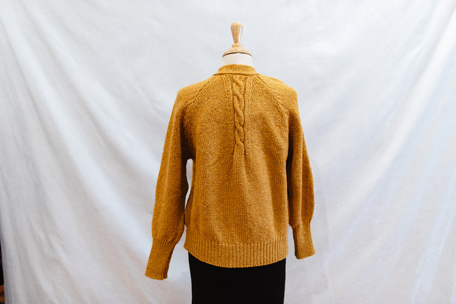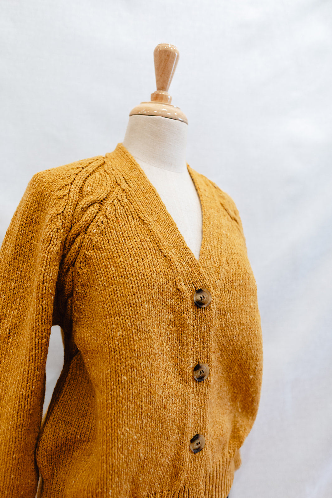 Ladies Fisherman Raglan Cardigan with Cabled Detail in Shamrock or Honey