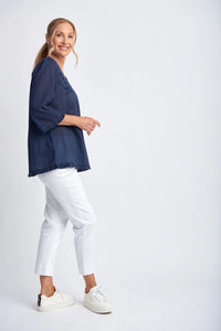 Goondiwindi Shirt - Navy Trapeze Embroidered Top