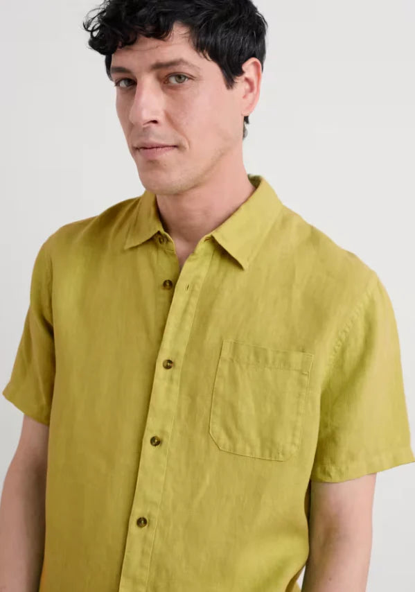 Seasalt Men's Carne Short Sleeve Linen Shirt in Light Citron