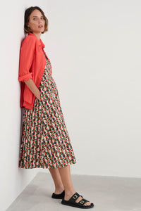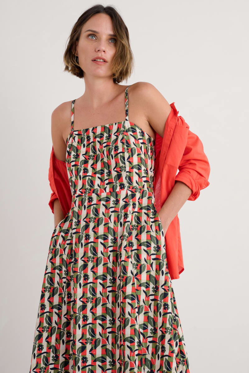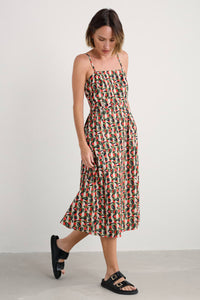Simple summer joy in a dress. Made from organic cotton in a classic fit-and-flare shape with a shirred back panel, adjustable shoestring straps and an all-over print. Dress up or down and celebrate the sunshine.