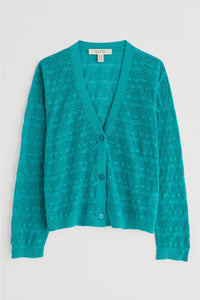 Knitted from soft, breathable organic cotton, with a gently textured pointelle stitch, this is the perfect throw-on style for summer days exploring or easy evenings with friends. The semi-fitted shape falls to the hip, a versatile length we love with tea dresses or a casual T-shirt and jeans.