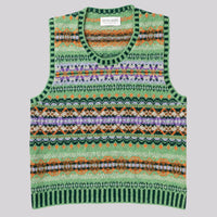 Inspired by Scottish Fairisle handknitted patterns, our modern low round neck vest features the classic striped rib hem. Knitted in Supersoft Shetland, it's lighter and softer than traditional Shetland wool, ensuring comfort and a personalized fit over time.
