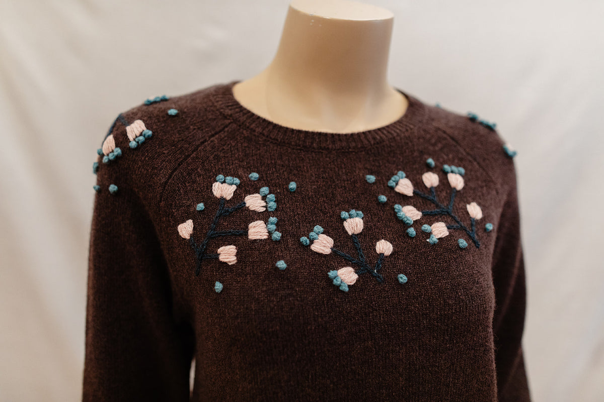 Mansted Vicky Crew Jumper with Embroidered - Available in Dark Brown