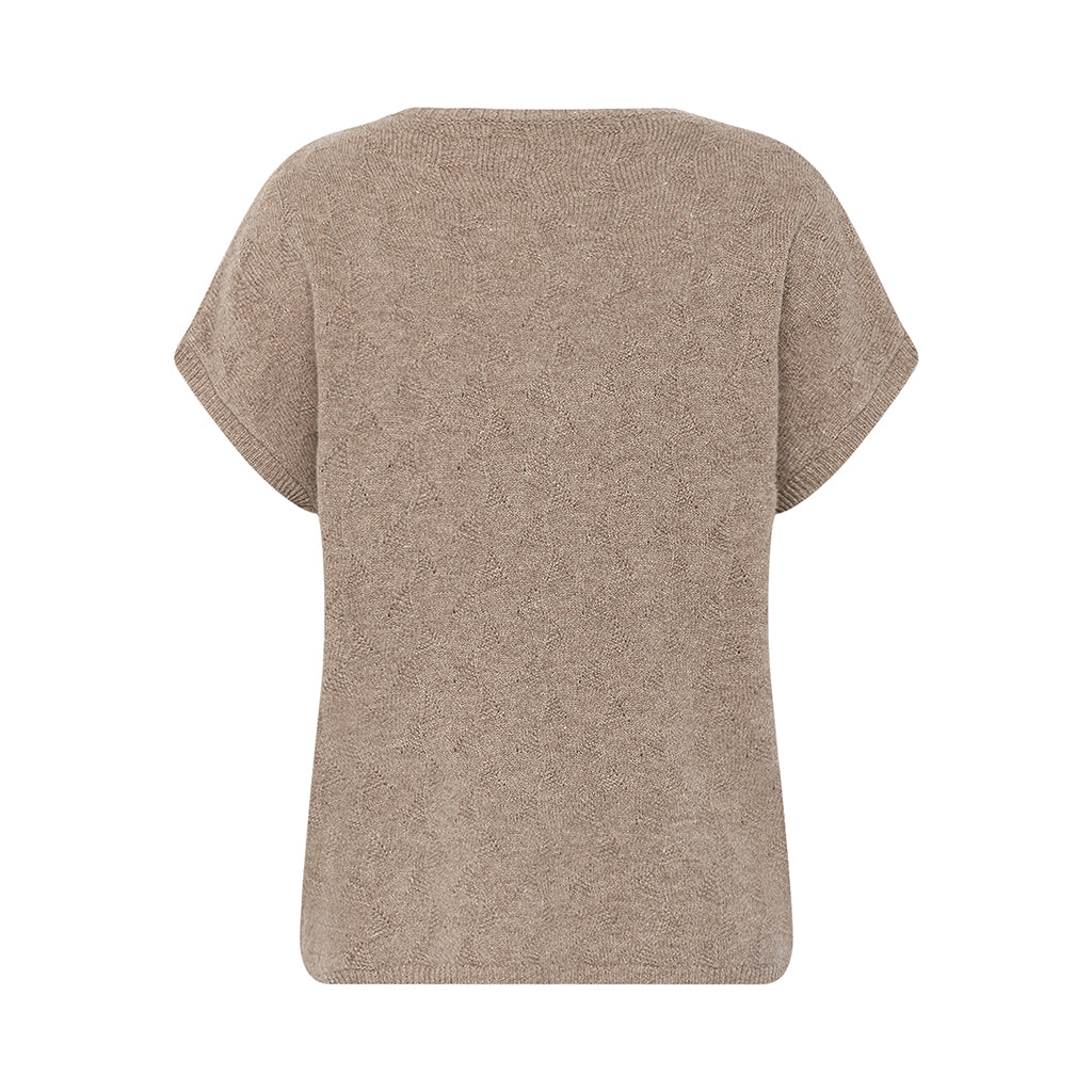 detail : vest with reverse knit detail at side seam and at shoulders that are pushed backwards. Features undyed coconut buttons.