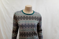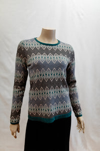 The Mansted Lola jumper in Forest Green has a striking jacquard pattern which adds a modern twist to a classic design. It features contrasting edge a rounded neckline, a inset shoulder and long sleeves. A soft touch, warm, luxury knit that'll be a favourite go-to layer for the on-coming chillier days.