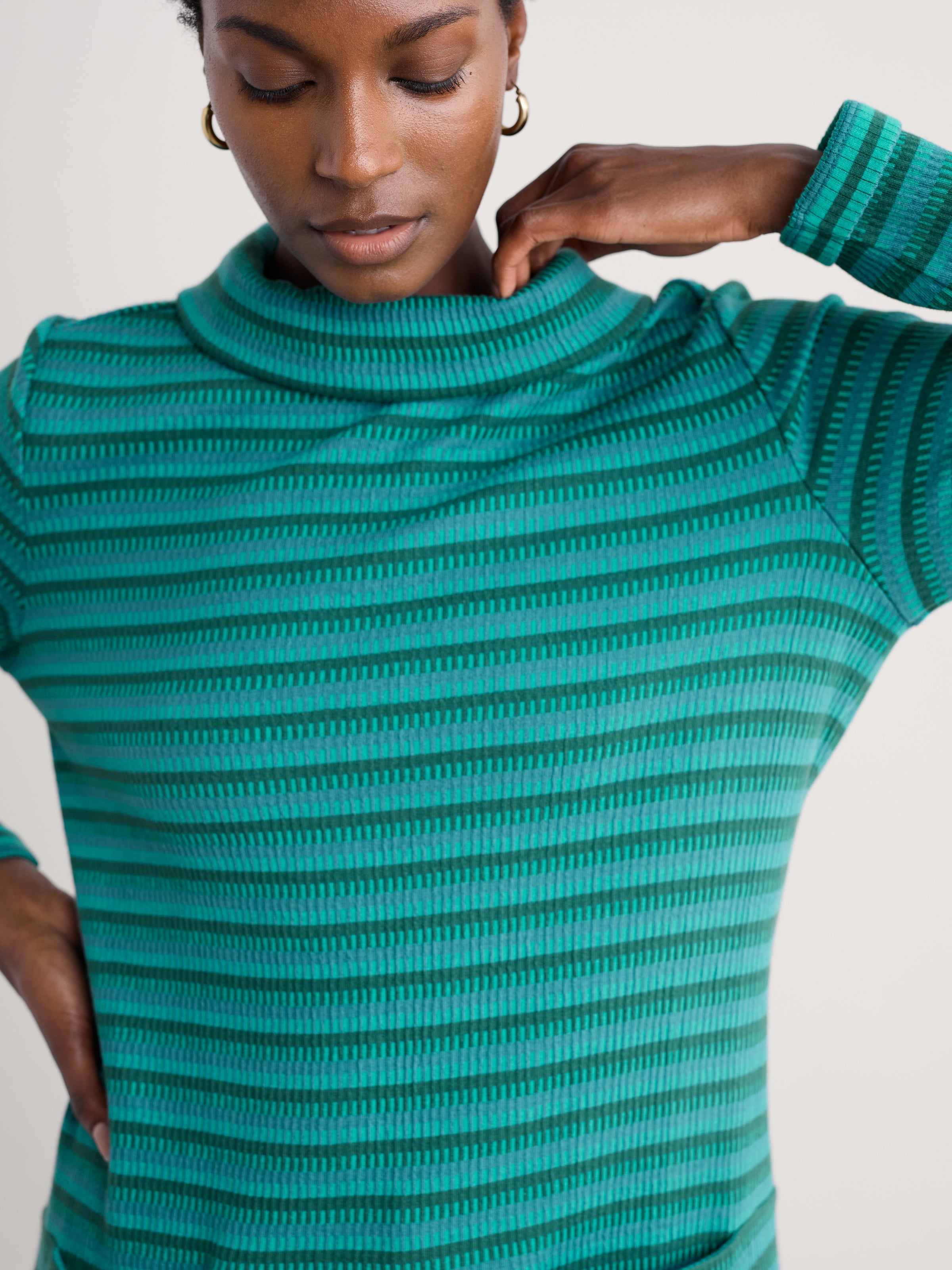 A textured jersey sweatshirt tunic in a relaxed shape, made from super soft cotton. Falling to mid-thigh, it has a Hepburn neckline and long sleeves with fixed turn ups. Perfect for relaxed weekends, our Mawgan Porth Sweatshirt is warm and cosy when you need an extra layer. A wardrobe staple that will see you through the seasons.